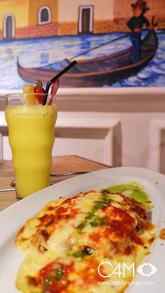 Restoran ini juga melayani pemesanan makan siang dan malam hari. Menunya memang lebih banyak ber”nafas” Itali, namun menurut saya, rasanya sudah sedikit disesuaikan dengan selera lidah Indonesia, paling-paling lidah ini hanya asing saat harus menyebutkan namanya saja, namun soal rasa…dijamin tetap membuat lidah bergoyang.