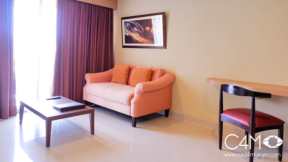 Menyenangkan ya punya kamar apartemen kayak gini. Ada ruang tamu dan ruang makan, pantry, berasa rumah sendiri.