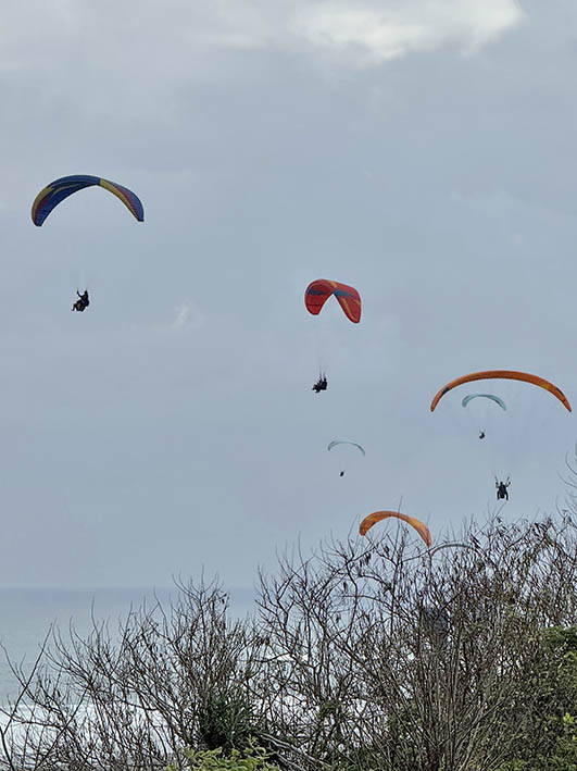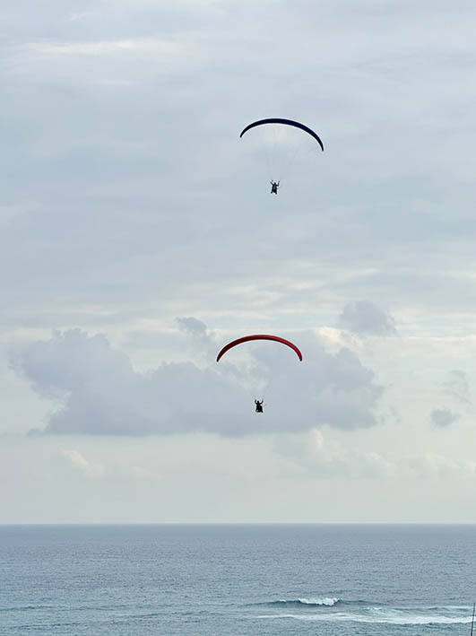 Rasanya? Luar biasa, di detik awal memang sedikit kaget karena tiba-tiba melihat hempasan ombak jauh di bawah dengan kaki kita menggantung tanpa pijakan. Tapi hanya sebentar, selebihnya sungguh luar biasa. “Akhirnya bisa terbang”—durasi sekali terbang adalah 15 menit. Terdengar singkat? Coba saja dulu, begitu kamu mengudara, 15 menit terasa lama. Staf yang mengudara bersama kita juga sangat ramah. Untuk mengurangi rasa panik, staf biasanya akan mengajak kita mengobrol. Staf-staf bertugas di sini ternyata atlet paragliding. Jadi dijamin profesional dan aman. Kita akan diajak berkeliling sambil sesekali bermanuver kecil di udara yang bikin hati sedikit mencelos. Tapi asli, seru banget!