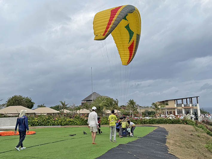 Saya memilih RIUG Paragliding untuk menjadi operatornya. Letaknya di area Nusa Dua. Mudah untuk ditemukan dengan menggunakan Google Maps. Saat tiba, tak disangka ternyata banyak peminatnya, baik dari turis lokal maupun mancanegara.